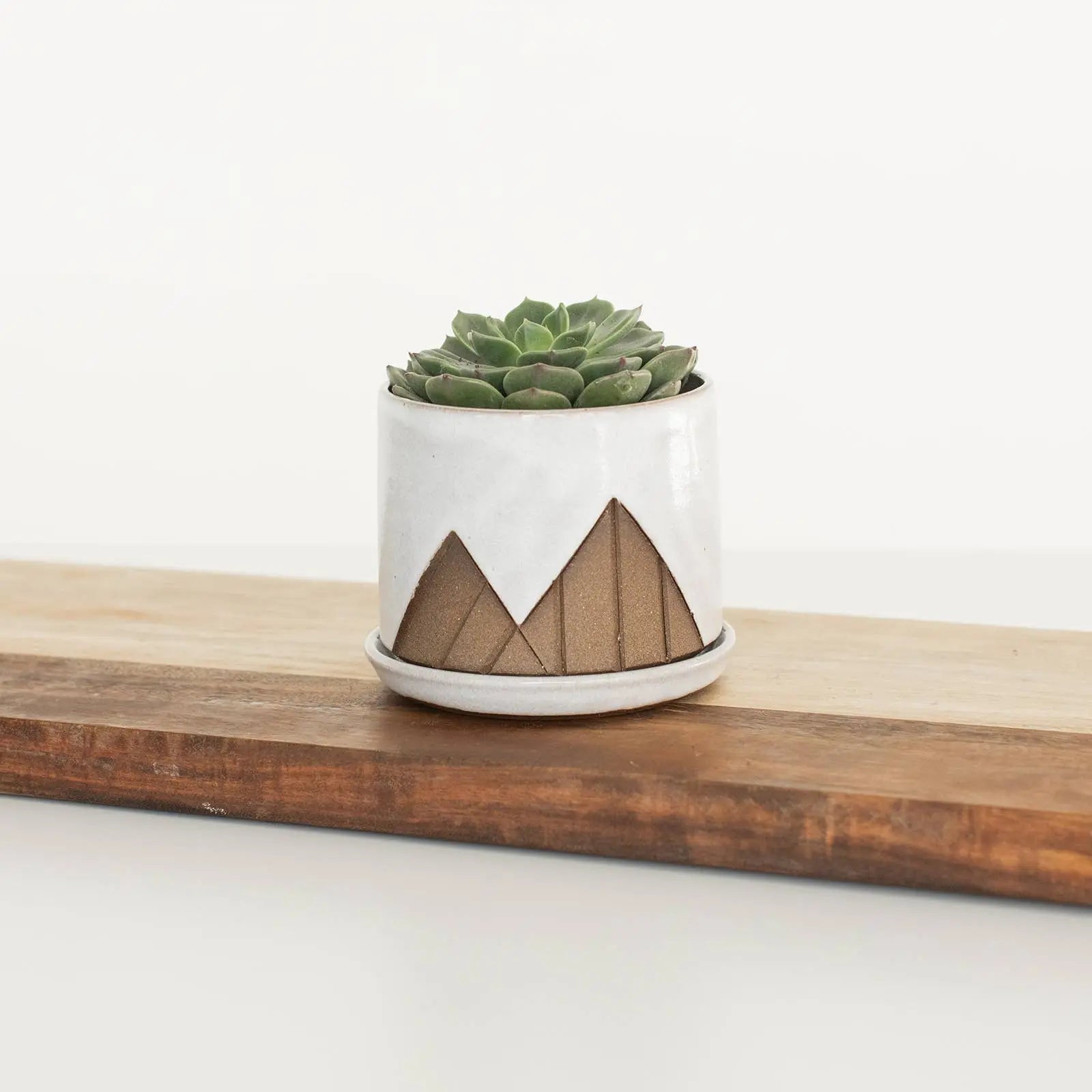 Mountain Planter Set – Nature-Inspired Pottery Introducing our Mountain Planter Set, a vibrant collection that showcases the beauty of nature. This series is where it all started, featuring hand-carved mountain designs that expose the natural stoneware clay. Each planter is surrounded by beautifully glazed skies and a smooth glazed liner, making these pieces the most colorful in our pottery collection. Every Mountain Planter is meticulously handcrafted from high-quality stoneware clay that is wheel-thrown, expertly altered, and finished with glazes made from raw materials in our studio.