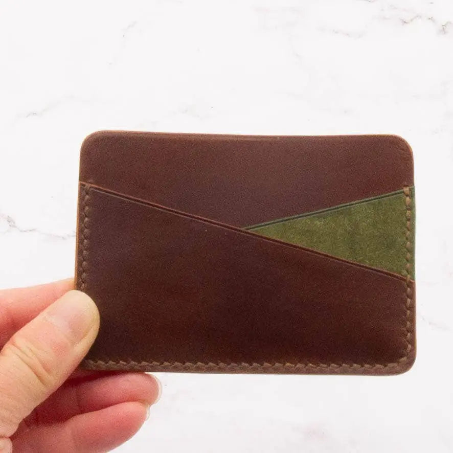 Our new handcrafted Colorblock Mountaintop Card Holder is handcrafted from premium Italian leather.  This piece combines elegance, durability, and a touch of fun with its unique colorblock design inspired by the silhouette of mountain peaks. - Handcrafted from 100% natural full grain, vegetable-tanned leather from Badalassi Carlo and Conceria Walpier Tanneries in Tuscany, Italy. The leather is  luxurious and durable, and will age beautifully and develop rich patina over time as you use it.