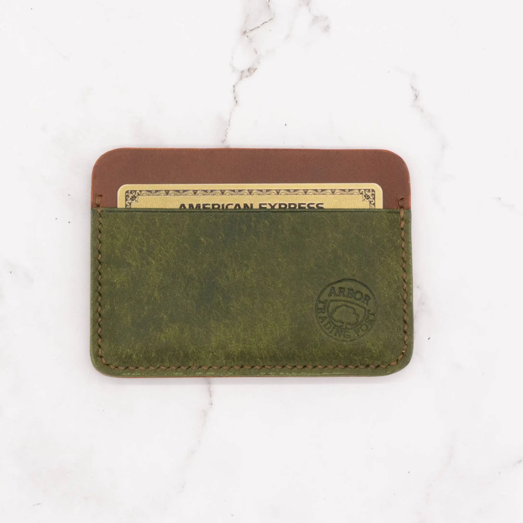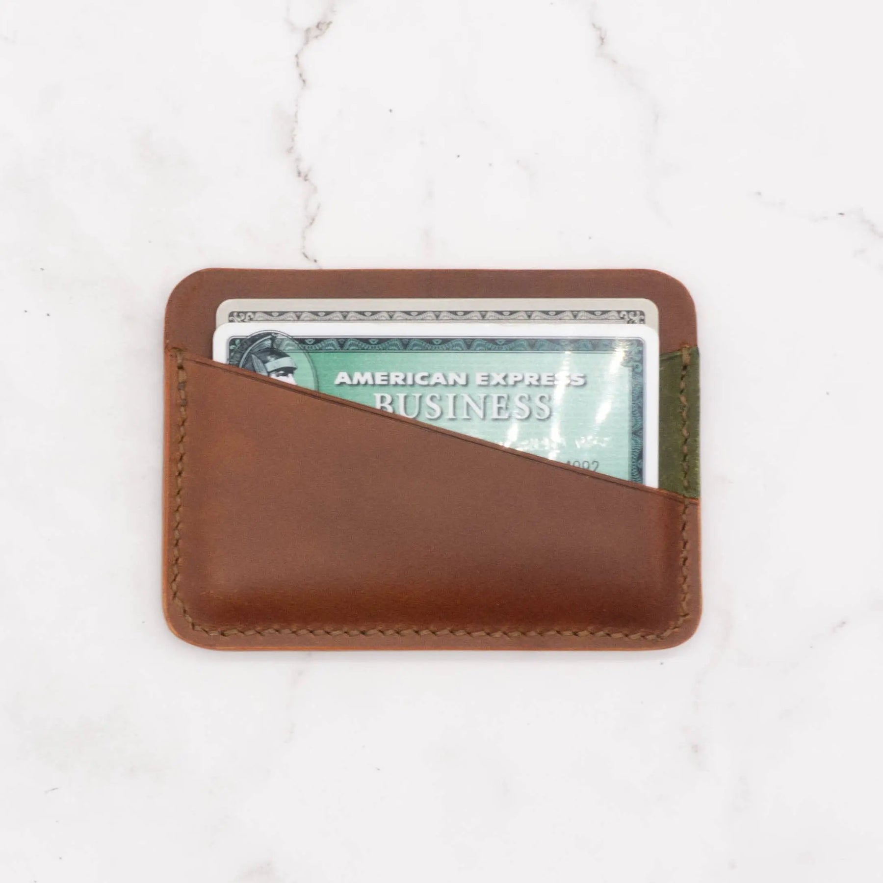 - Full grain leather retains all natural marks and folds of leather. You may see variation in color. - Saddle stitched by hand. Edge is polished and burnished. Features 4 pockets for cards, including one central pocket and 3 pockets on both sides. - Dimensions: 4.1" x 2.9". - Ready to gift in a cotton dust pouch. - Handcrafted in Ann Arbor, MI. - Care Instructions: Keep your leather product dry and avoid prolonged exposure to moisture. If needed, gently wipe it with a soft, dry cloth.