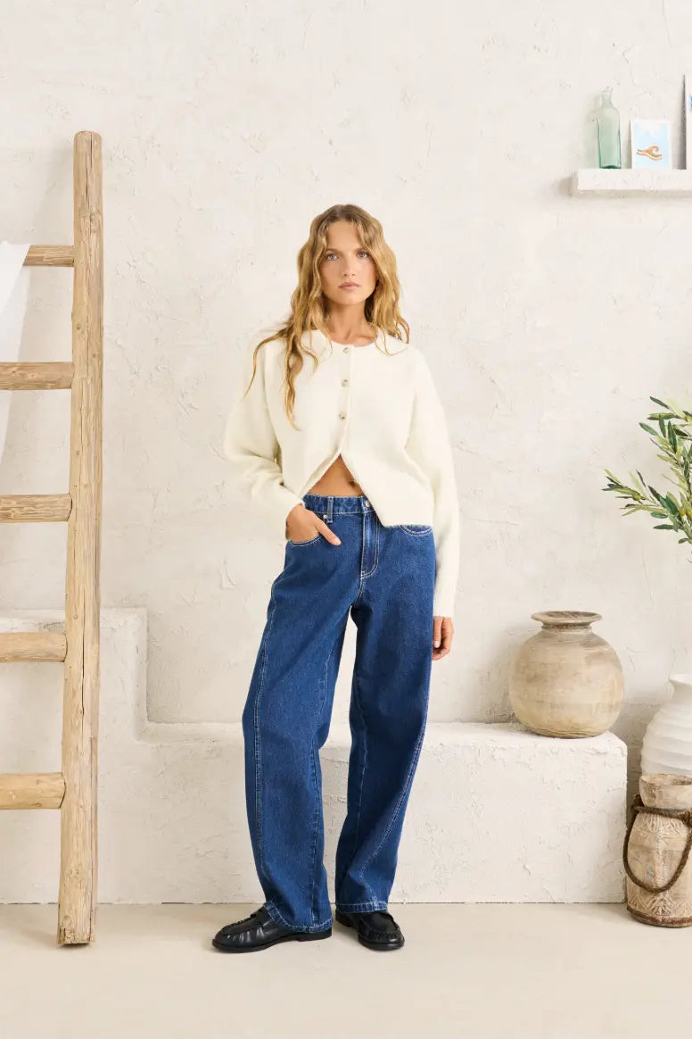 In a soothing Blue hue, the Estelle Fluffy Knit Cardigan carries a soft hand feel with a slightly cropped fit. Finished with button-down detailing, it’s a cozy yet elevated knit layer.