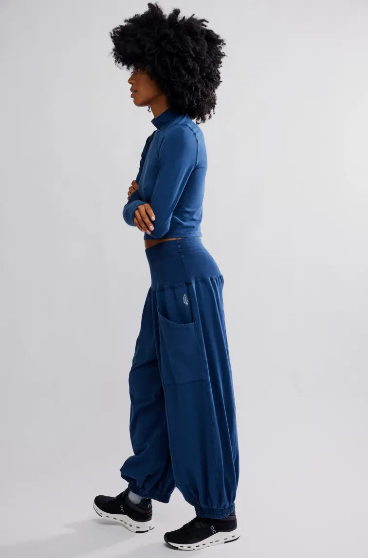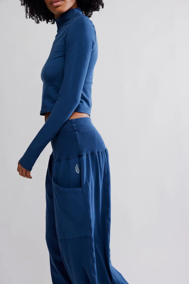 Features: Top: Mock neckline; long sleeve style; thumbhole detail Pants: High-rise design; harem-inspired silhouette; exaggerated pockets; elasticated waist and ankle cuffs