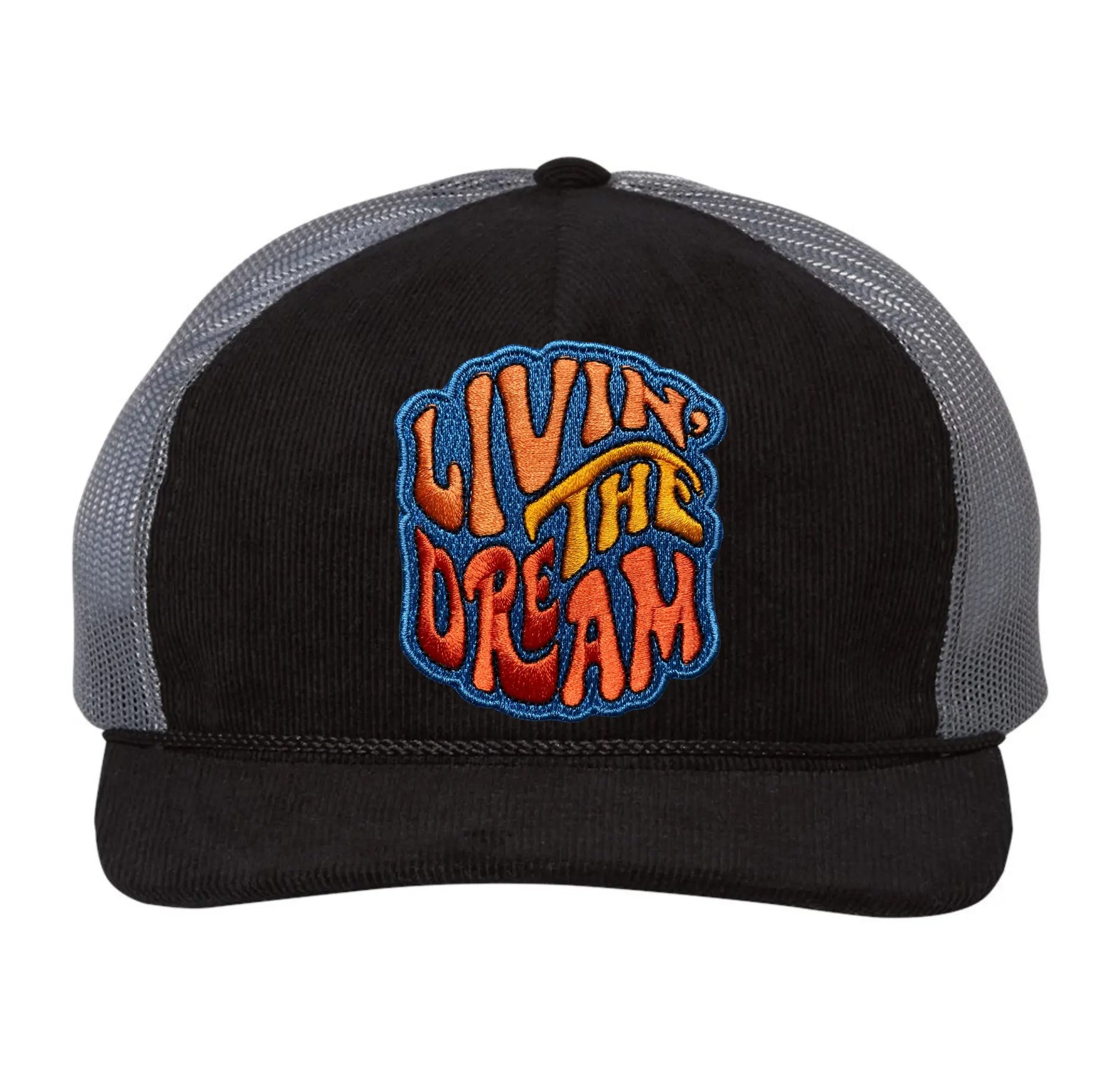 Livin' The Dream Patch Trucker Hat. Corduroy Hat with Embroidered Patch.
