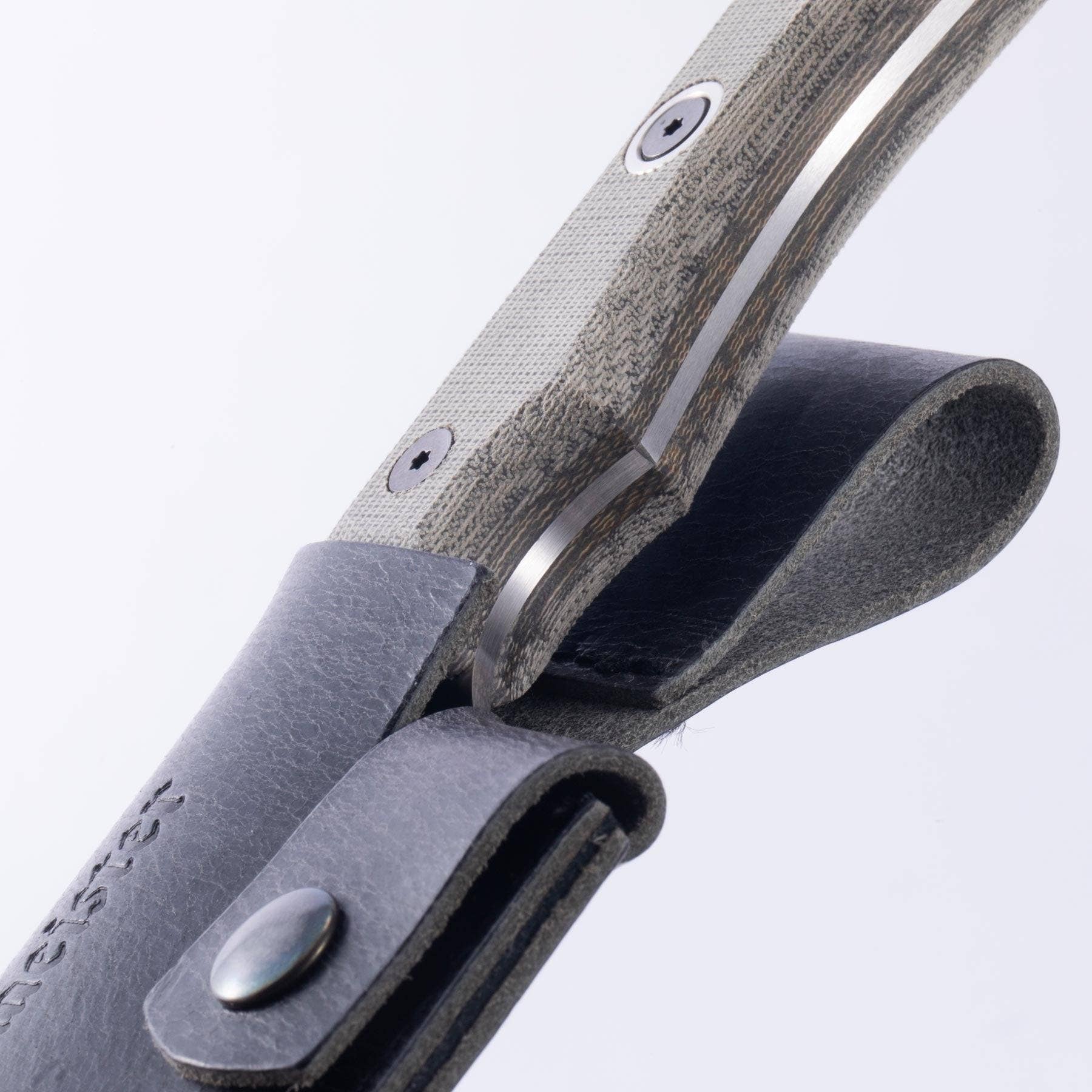 Gear up for the great outdoors with the Messermeister Leather Belt Sheath, designed specifically for the Overland Chef 8" Camp Knife. Handcrafted in Holland from premium, oil-tanned full-grain leather, this sheath features a rustic matte black finish that’s tough enough for the wild but stylish enough for any setting. Custom-fitted for a secure hold, it’s built with a snap closure and a low-slung belt loop for easy access wherever adventure takes you. Durable, rugged, and undeniably cool, this sheath offers serious protection and timeless craftsmanship. (Knife not included.) When only the best will do, trust 100% Messermeister quality to keep your blade adventure-ready. Brass hardware notification: LEARN MORE ⚠️ WARNING: Cancer and Reproductive Harm – Lead – www.P65Warnings.ca.gov